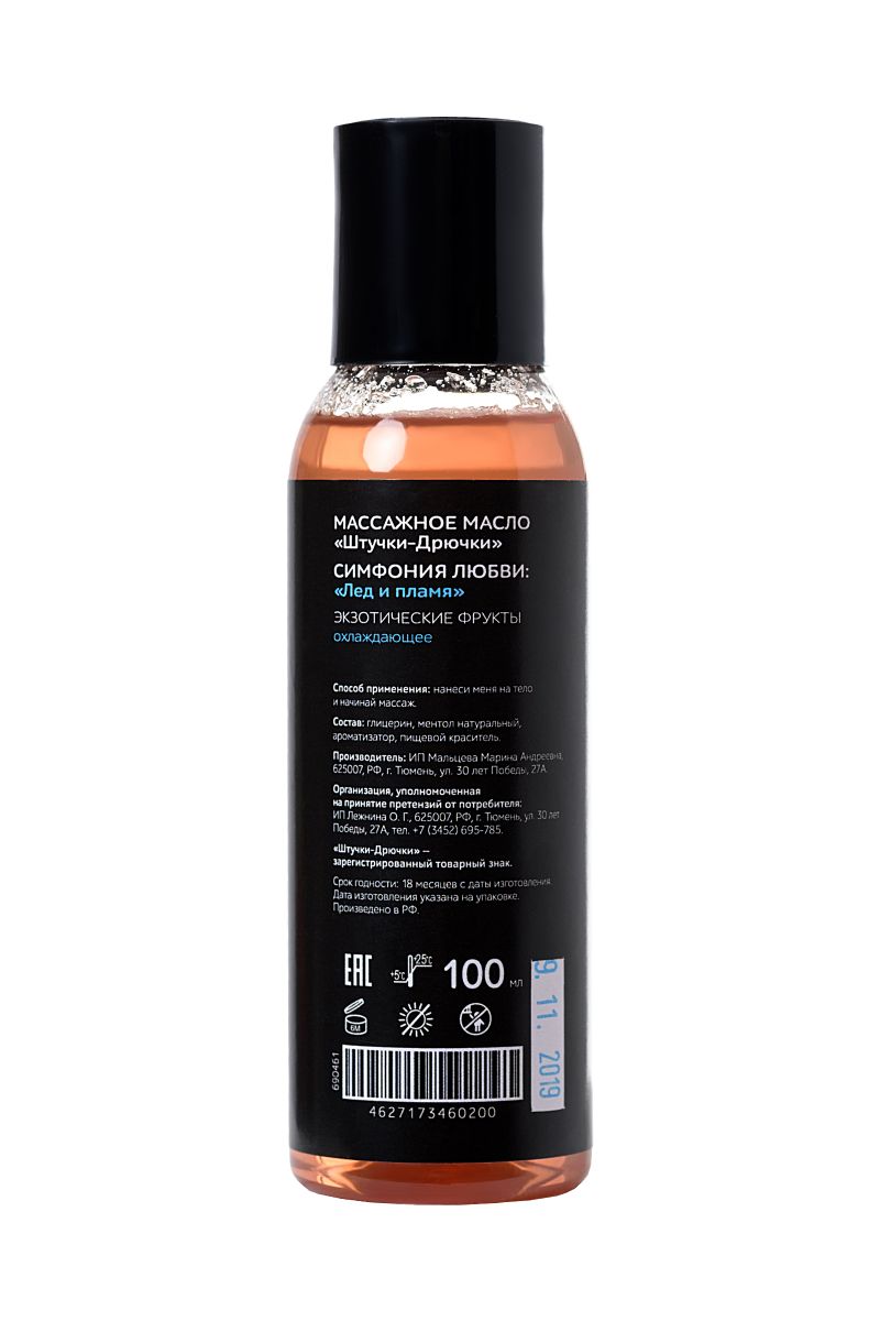 Массажное масло серии Огонь и Лед - с охлаждающим эффектом и натуральной вкусовой добавкой экзотические фрукты. Идеально подойдет для использования на эрогенных зонах. Используйте во время предварительных ласк, чтобы усилить ощущения и продлить наслаждение.