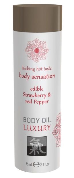 Купить Съедобное массажное масло с ароматом клубники и красного перца - 75 мл. Shiatsu по лучшей цене с доставкой - секс-шоп Ynunu.ru