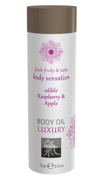Купить Съедобное массажное масло с ароматом малины и яблока - 75 мл. Shiatsu по лучшей цене с доставкой - секс-шоп Ynunu.ru