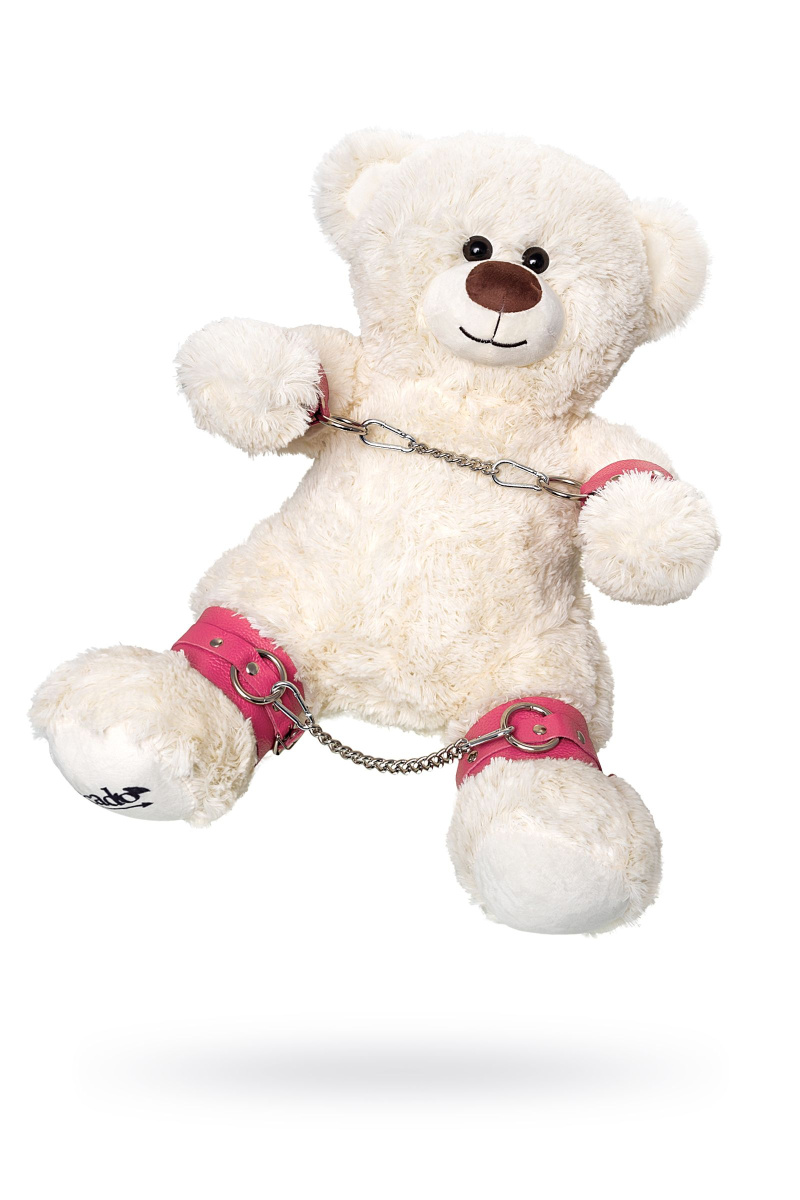 Бондажный набор: белый мишка с розовыми оковами и наручниками