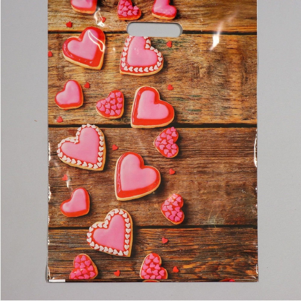 Полиэтиленовый пакет с розовыми сердечками - 31 х 40 см.