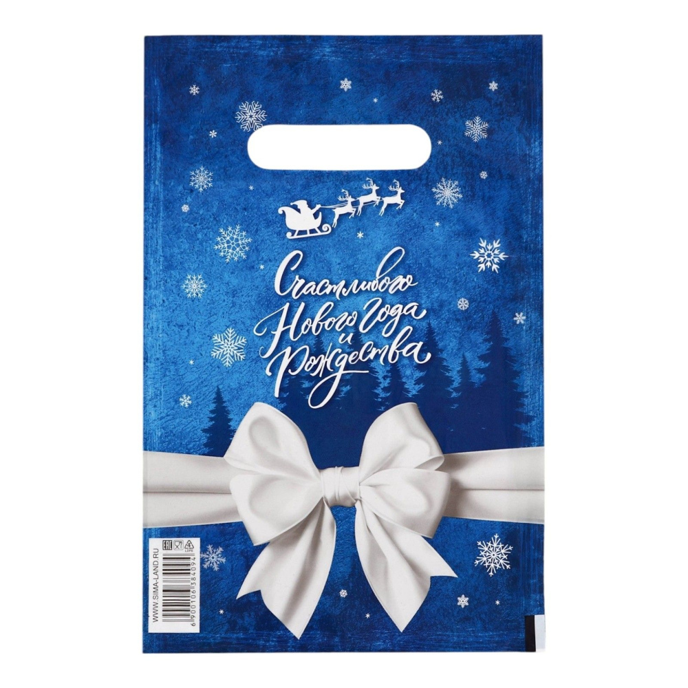 Купить Сине-белый подарочный новогодний пакет с вырубной ручкой (20х30 см) Сима-Ленд по лучшей цене с доставкой - секс-шоп Ynunu.ru