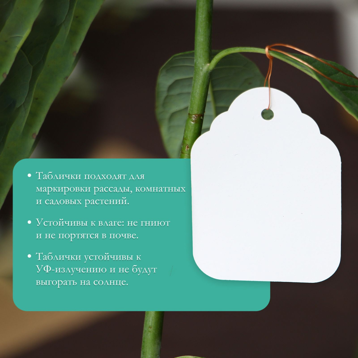 • Удобно закрепить бирку на ветке растения.