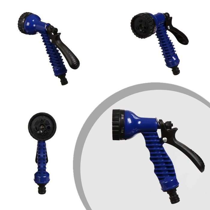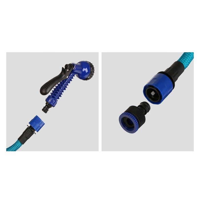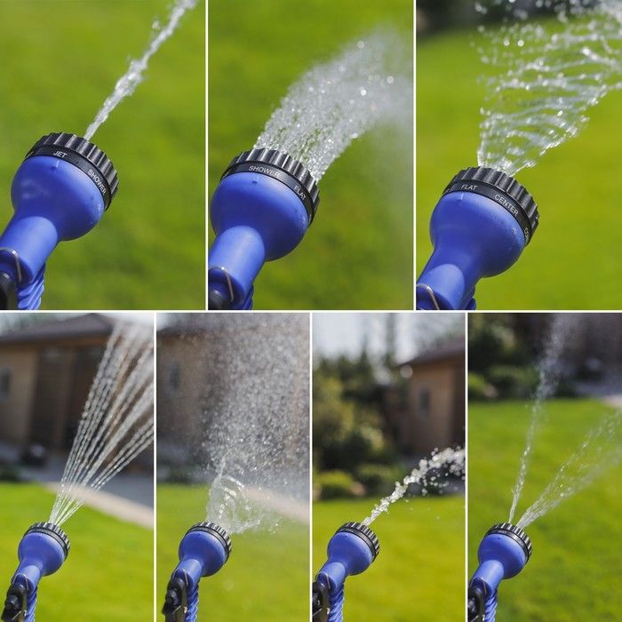 Чудо-шланг в нейлоновой оплётке с распылителем и штуцером. Шланг двухслойный, длиной 5-15 метров. Распылитель с 7 режимами работы. Штуцер на 12 мм (1/2’’), 19 мм (3/4’’).