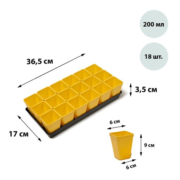 Набор для рассады: 18 стаканов (200 мл.) и поддон (36,5х17 см)