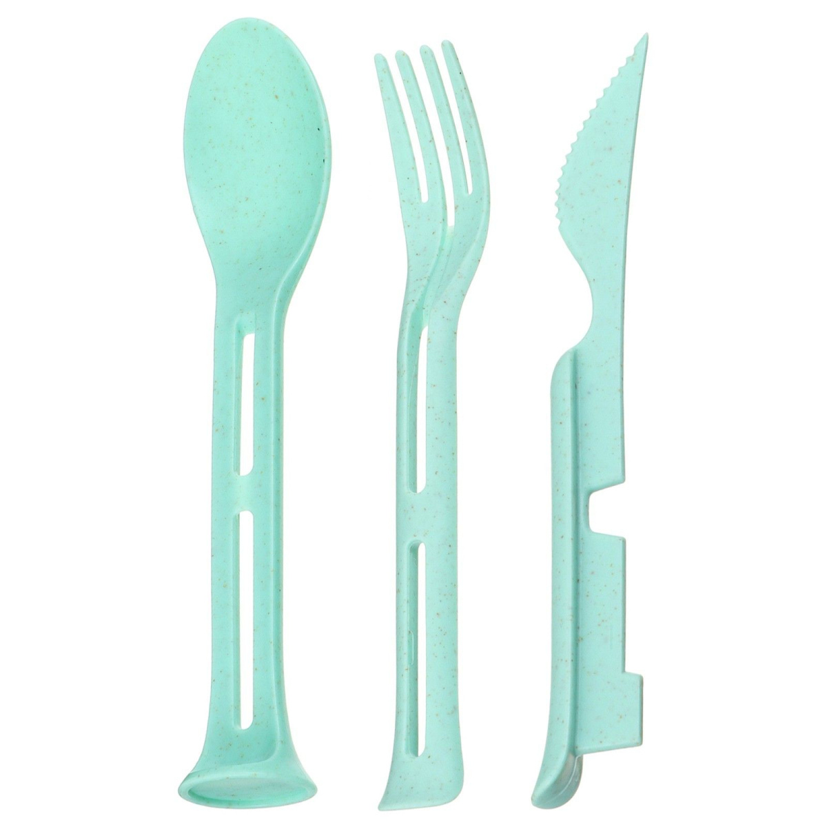 Набор приборов удобно брать с собой в походы и на пикники. Ложка, вилка и нож складываются, как трансформер, и не занимают много места в рюкзаке.
