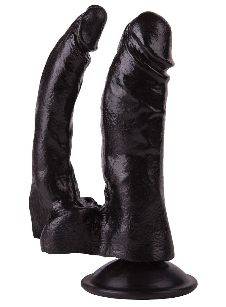 Двойной чёрный фаллоимитатор на присоске - 15 см.