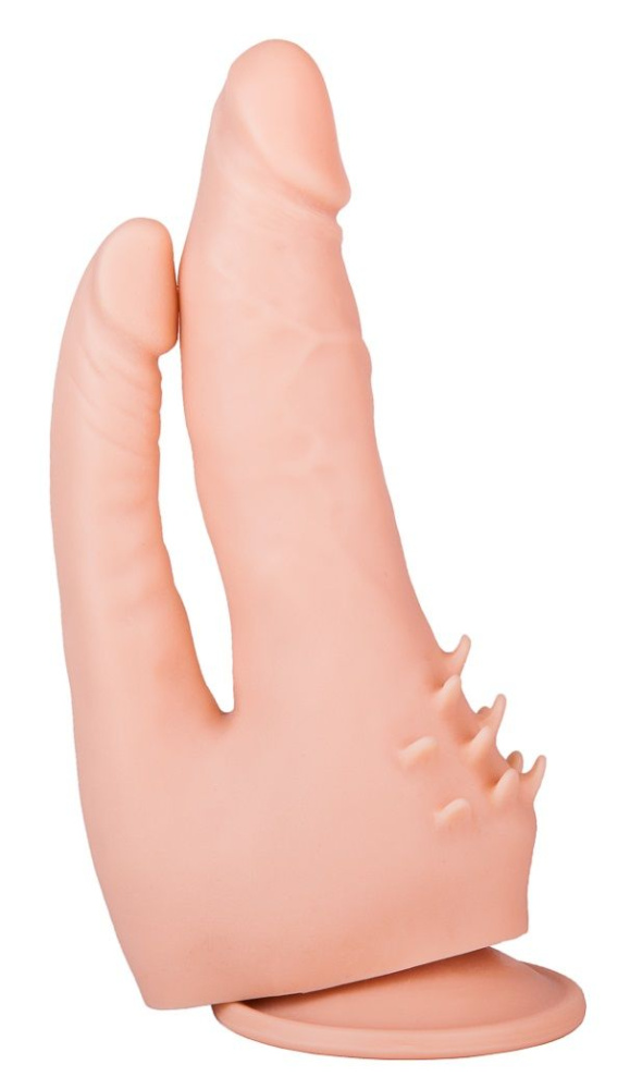 Пока фаллосы массируют стеночки лона и ануса, мяконькие шипы снаружи обеспечивают воздействие на клитор. Лёгкий массаж этой зоны приумножит и без того мощное удовольствие от двойного проникновения. Рабочая длина - 17 см., диаметр головки - 2,9 см.