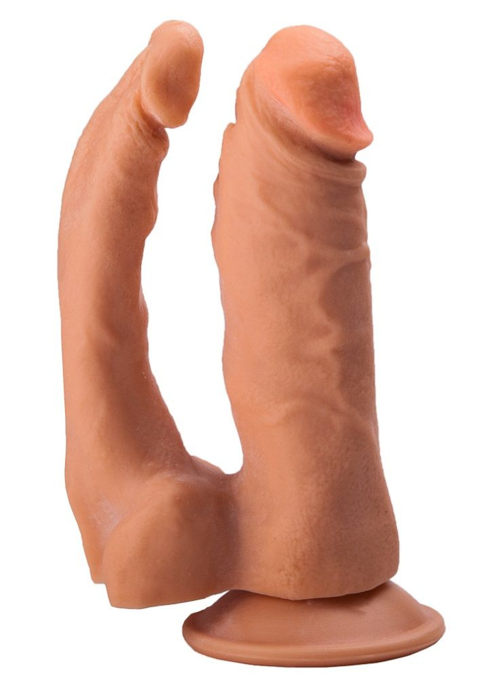 Эта бежевая секс-игрушка, состоящая из сдвоенных фаллосов – большого и маленького, подарит вам радость двойного проникновения.