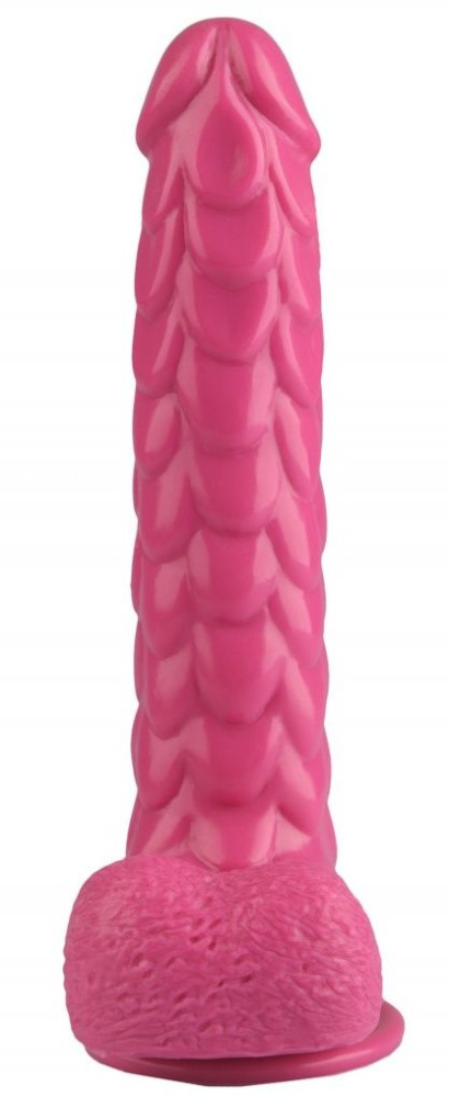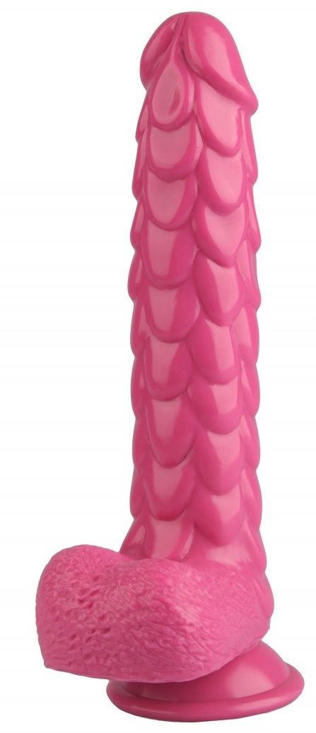 Купить Розовый реалистичный фаллоимитатор с чешуйками на присоске - 24 см. Rubber Tech Ltd по лучшей цене с доставкой - секс-шоп Ynunu.ru