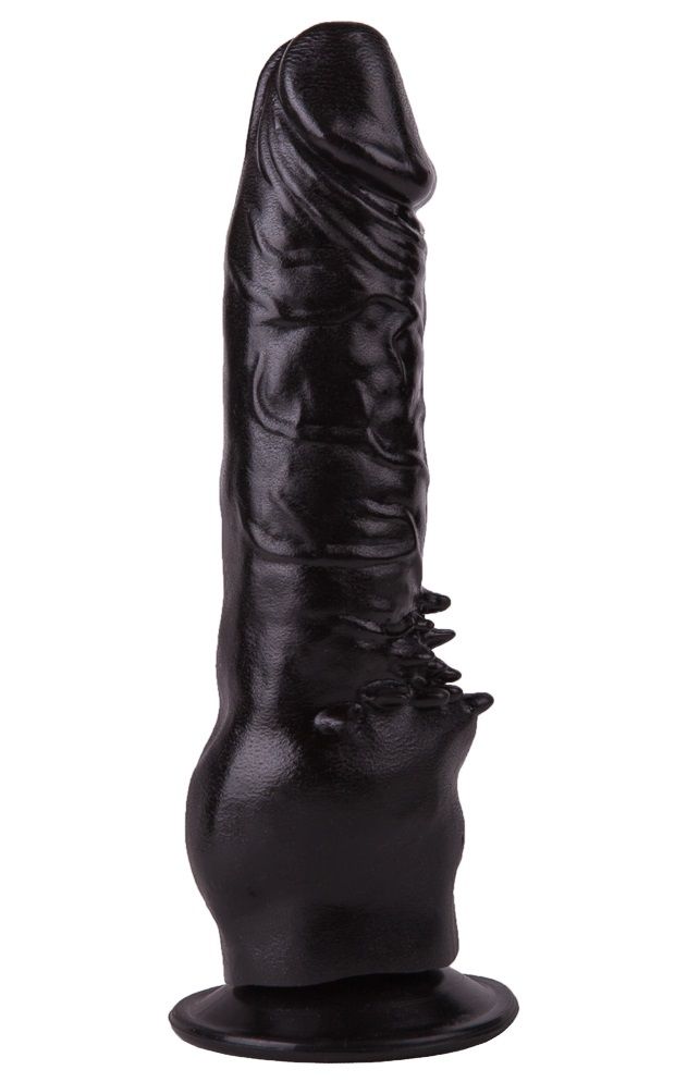 Чёрный фаллоимитатор с клиторальными шипами - 17,8 см.