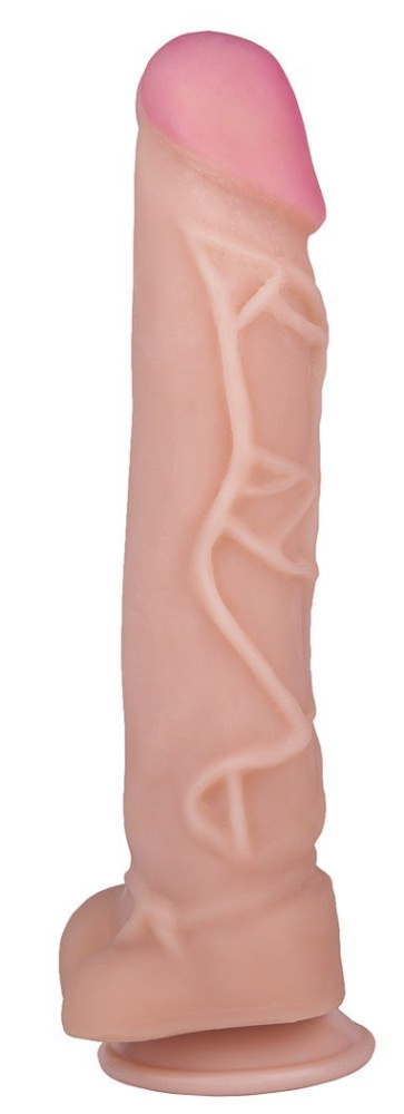 Фаллоимитатор на присоске с узором из вен с одной стороны - 25,5 см.