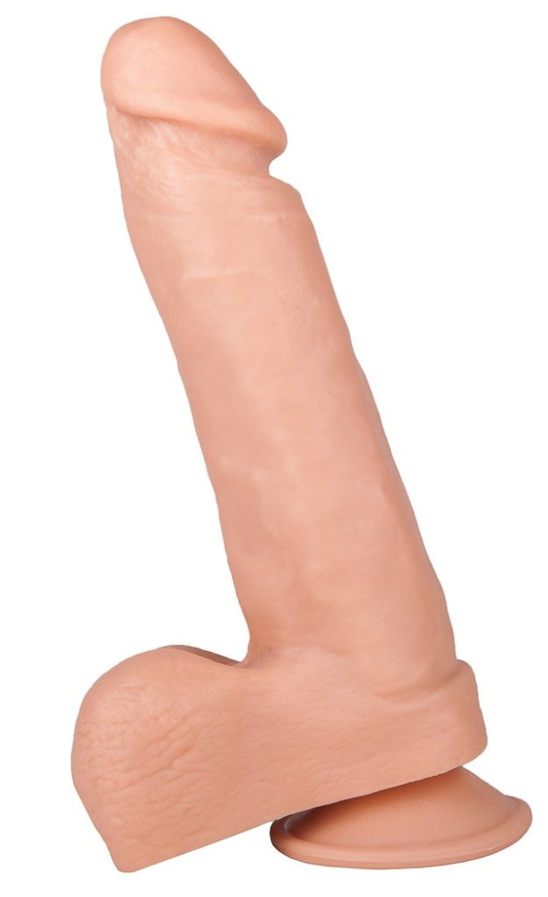 Реалистичный гелевый дилдо с мошонкой и присоской - 21 см.