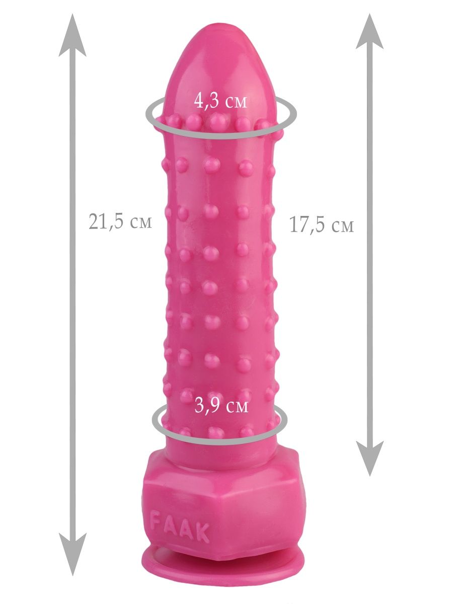 Розовый фаллоимитатор с шипиками - 21,5 см.
