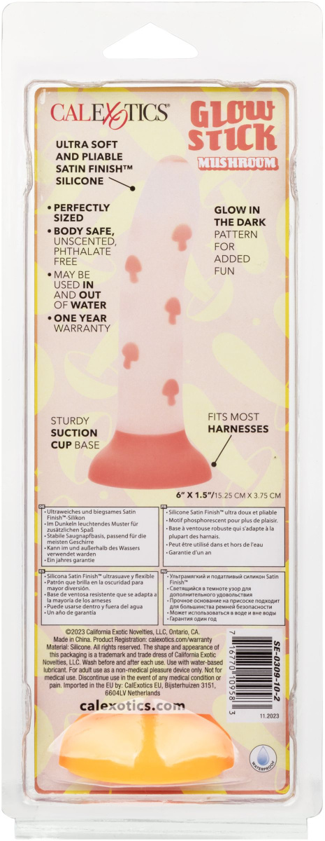 Приоритет комфорта — он изготовлен из безопасного для тела силикона. Эта приверженность качеству гарантирует беспроблемный опыт, позволяя вам полностью сосредоточиться на своем удовольствии. Будь то причудливое дополнение к вашим индивидуальным сессиям или забавный поворот в совместных приключениях, Glow Stick Mushroom — яркий пример того, как удовольствие может быть игривым. Рабочая длина - 15,2 см.