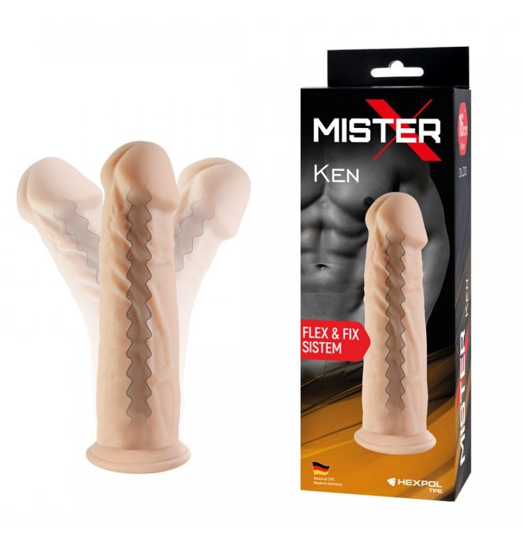 Телесный фаллоимитатор на присоске с гибким хребтом Ken