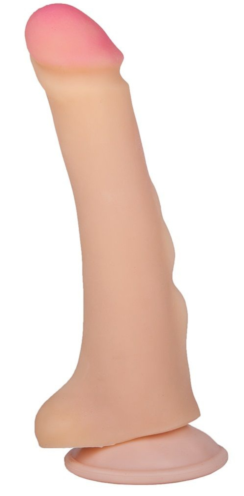 Телесный фаллоимитатор на присоске со стимулирующими шишечками - 19,5 см.