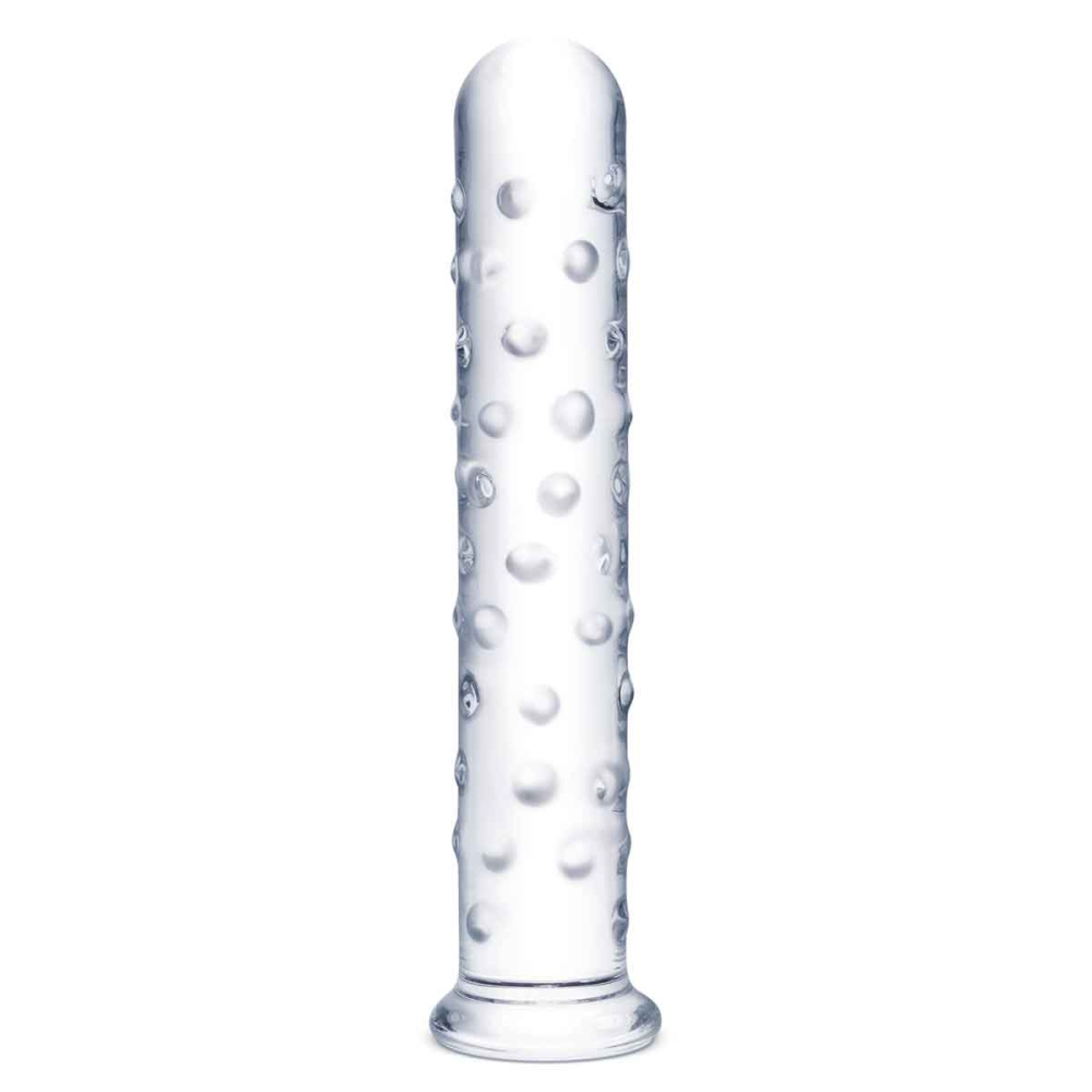 Наслаждайтесь глубоким проникновением и невероятными оргазмами от этого фаллоимитатора из блестящего стекла с пупырышками вдоль всего стержня, которые обеспечивают тщательный массаж, стимулируя все области, которые больше всего этого желают. Гладкий заостренный кончик позволяет легко вводить этот большой фаллоимитатор. Фаллос сделан вручную, из прозрачного прочного стекла, поэтому возможны небольшие отклонения в указанных размерах. Игрушки из стекла очень гигиеничны, за ними легко ухаживать: промойте проточной водой с моющим средством, высушите, и положите на хранение в мешочек на шнурках с логотипом, который вы найдете внутри коробки. Стимуляторы из стекла вы можете нагревать или охлаждать, для того, чтобы получить наиболее яркие и новые ощущения. Диаметр ограничительного кольца - 6 см.