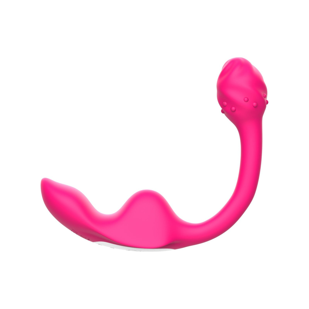 Розовый многофункциональный стимулятор для женщин. Имеет форму лодочки с бугорком посередине и отростком-шишечкой. Может вкладываться в трусики (и при этом отросток вводится в анус), может использоваться для одновременной стимуляции точки G и клитора. Управляется при помощи пульта ДУ, 7 режимов вибрации.