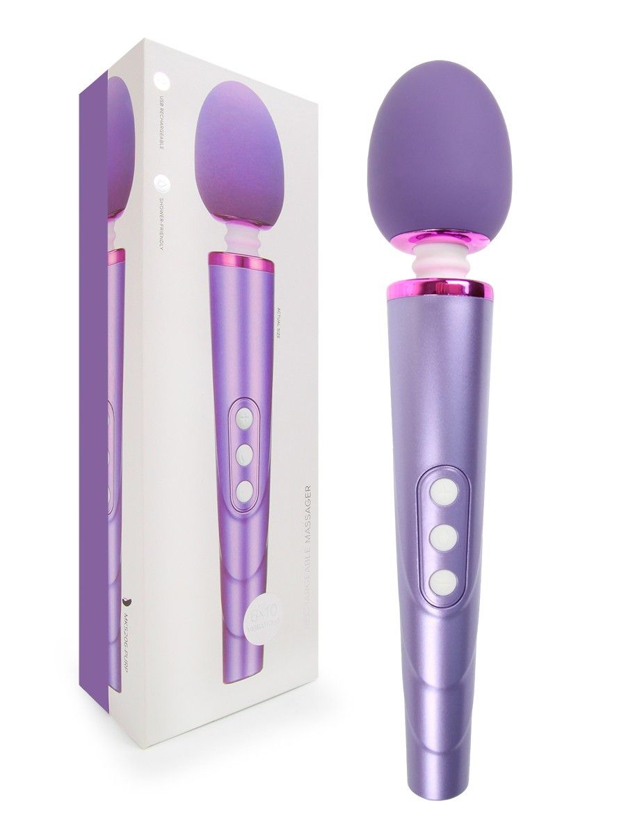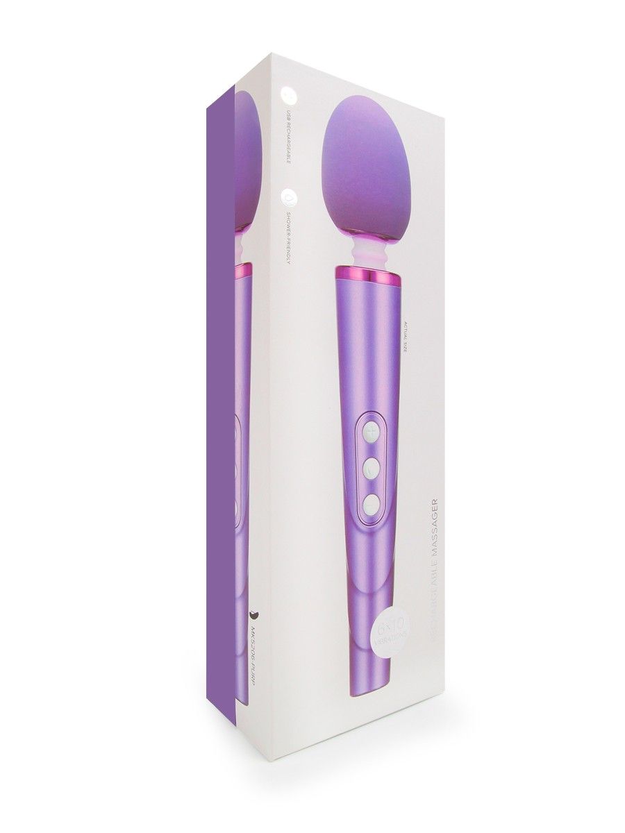 Сиреневый жезловый вибромассажер с головкой на гибкой шее. Перезаряжаемый. Имеет 6 режимов вибрации.