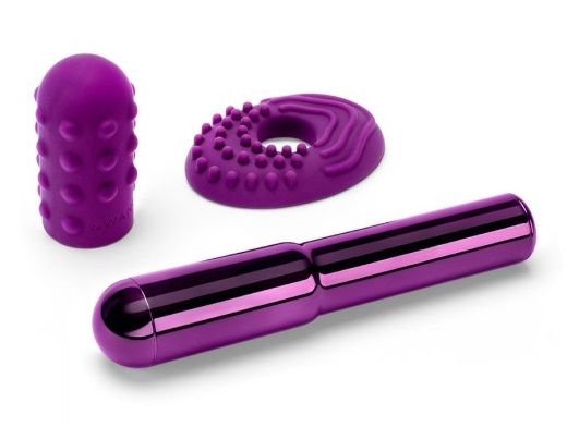 Купить Фиолетовый жезловый вибратор Le Wand Grand Bullet с двумя нежными насадками Le Wand по лучшей цене с доставкой - секс-шоп Ynunu.ru