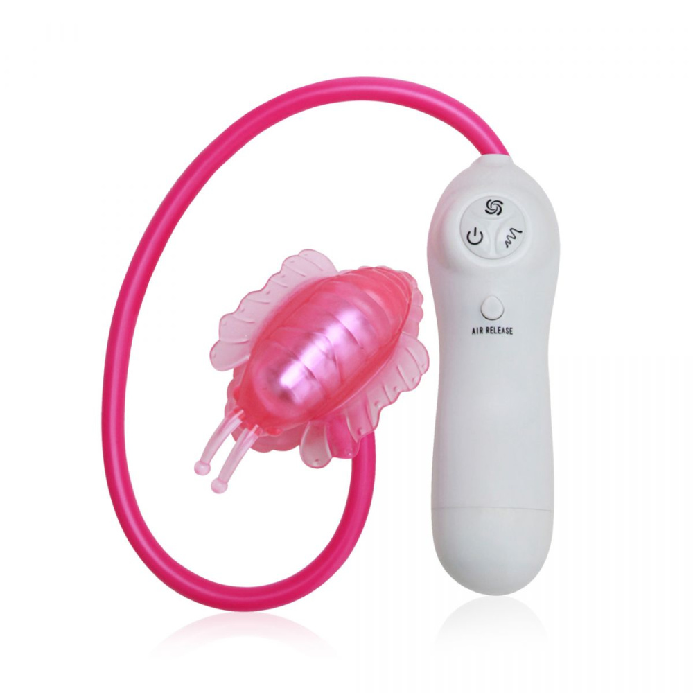 Розовая клиторальная помпа-бабочка с 7 функциями вибрации