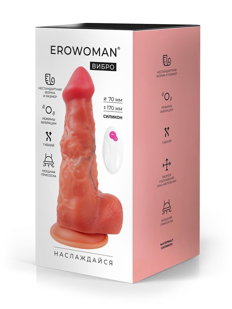 Купить Телесный вибратор-реалистик с пультом ДУ - 25 см. Erowoman-Eroman по лучшей цене с доставкой - секс-шоп Ynunu.ru