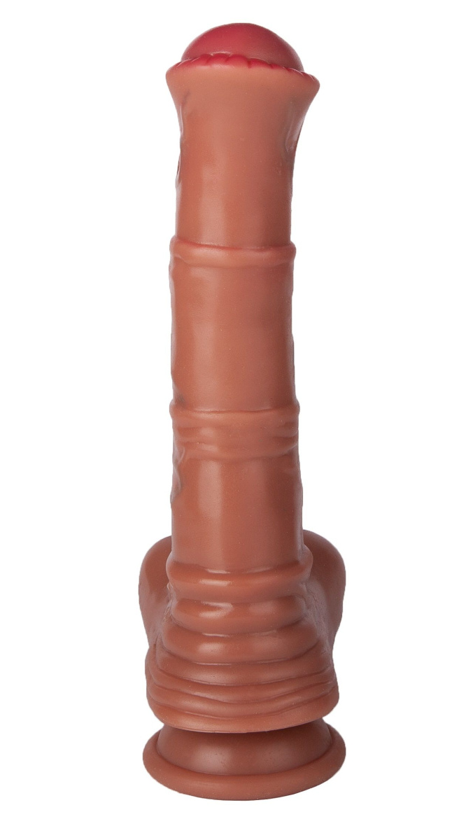 Фантазийный вибромассажёр (7 режимов вибрации) с нагревом до 42 градусов, вращением, возвратно-поступательными движениями (2 режима фрикций) и пультом ДУ. Тактильно похож на живую плоть. Пышная мягкая мошонка для внешней стимуляции и реалистичности ощущений. Ультрареалистичные формы и рельеф поверхности для поклонников зоо-эротики. В основании присоска для фиксации на гладкой твёрдой плоскости. Водонепроницаемый. Перезаряжаемый.