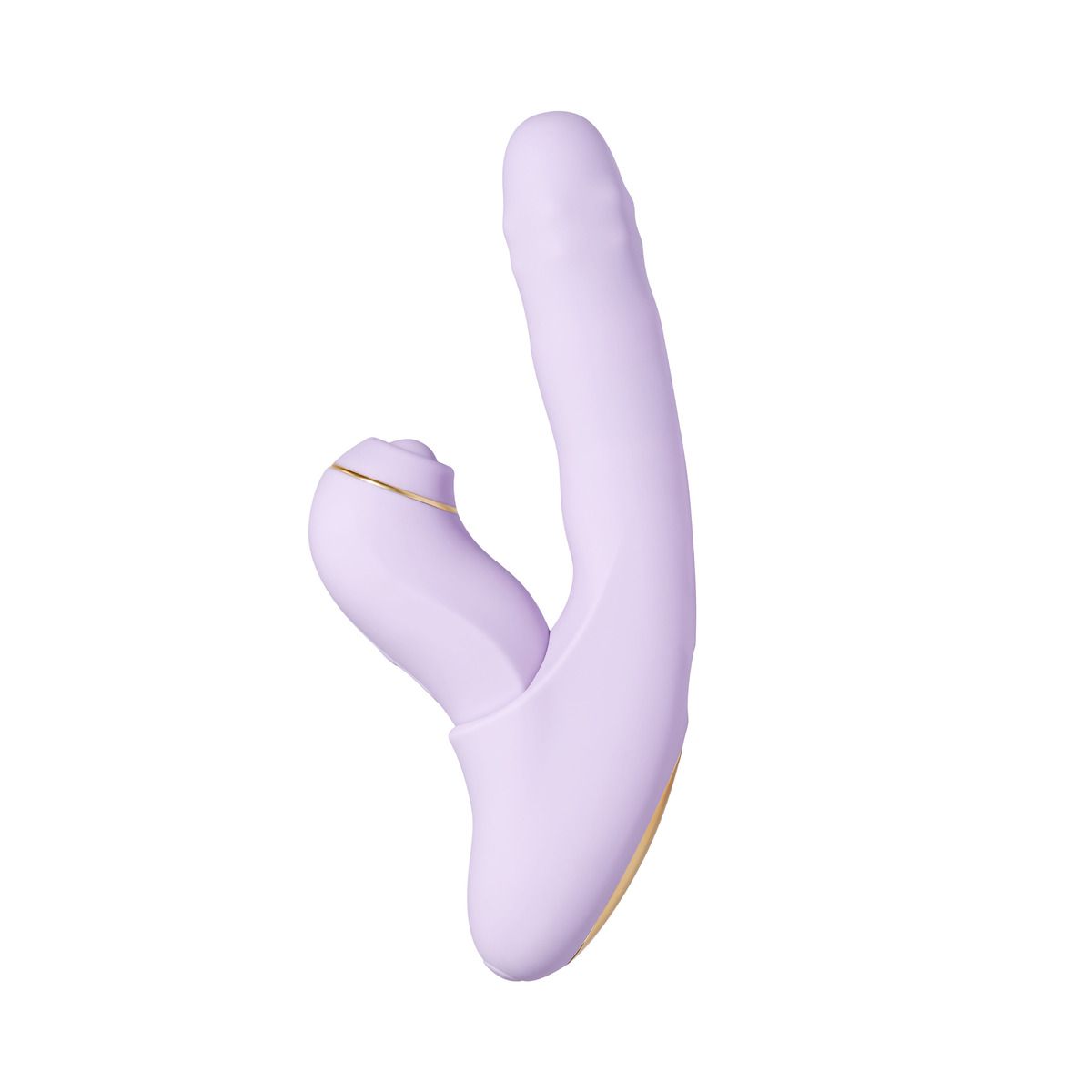 Сиреневый вибромассажер со съёмным клиторальным пульсатором DuoGlow