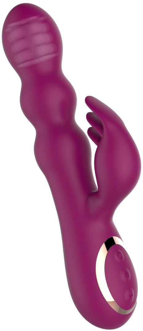 Сливовый вибратор-кролик AN Stamen с массажем бусинами - 22 см.
