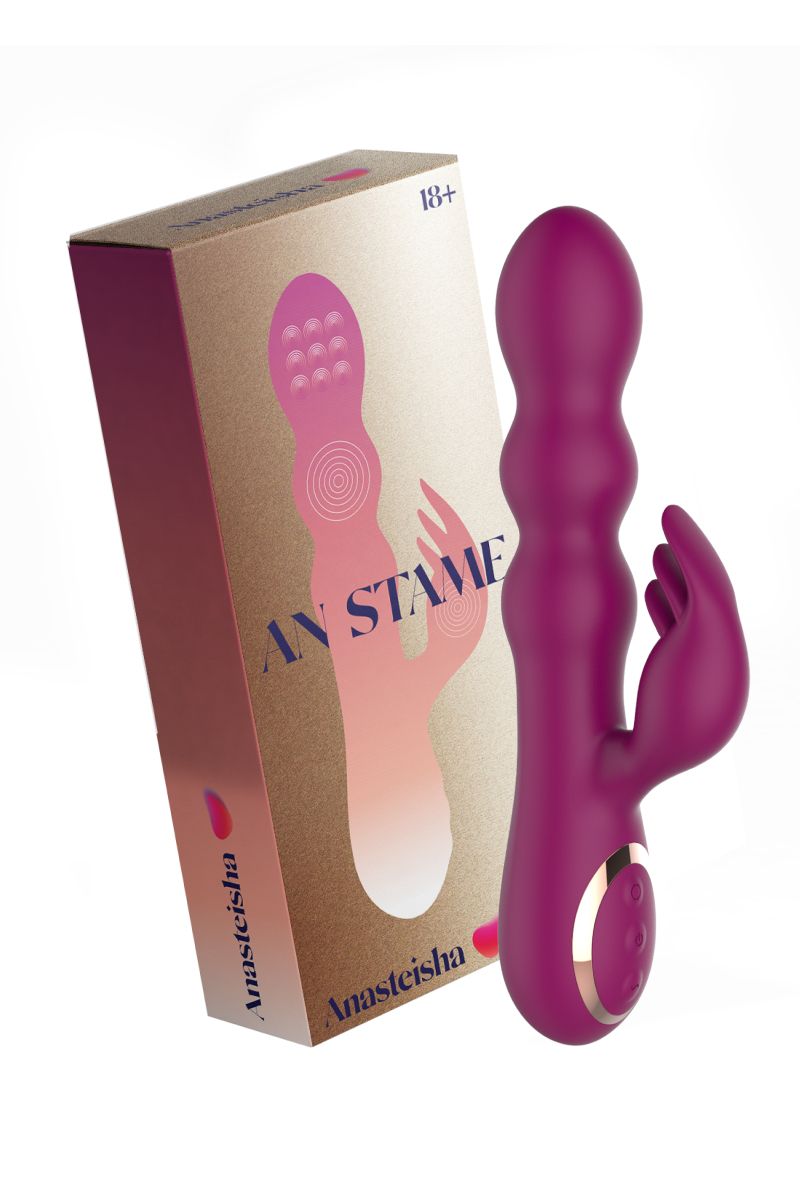 Купить Сливовый вибратор-кролик AN Stamen с массажем бусинами - 22 см. Anasteisha по лучшей цене с доставкой - секс-шоп Ynunu.ru