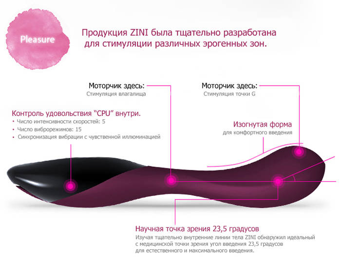 Уникальный эффект создает комбинация двух моторчиков, один из которых стимулирует G точку, а другой самую деликатную и чувствительную зону – преддверие. Идеальный угол изгиба 23,5 градуса позволяет достичь множественного оргазма.