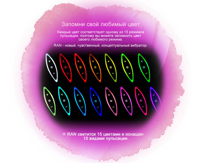 Каждый из 15 вариантов вибрации и пульсации соответствуют определённому цвету, что позволяет установить любимый режим даже в темноте. Полностью заряженный аккумулятор рассчитан на 4 часа непрерывной работы, зарядное устройство в комплекте. Дизайнерская упаковка делает ZINI роскошным подарком. Длина - 20 см.