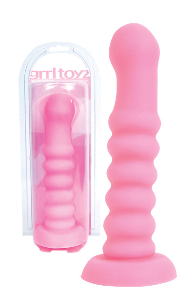 Розовый водонепроницаемый вибратор с рёбрышками. Силиконовый вибратор с увеличенной головкой Grrl Toyz.