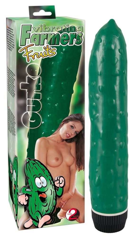 Зеленый вибромассажер в виде огурца.
