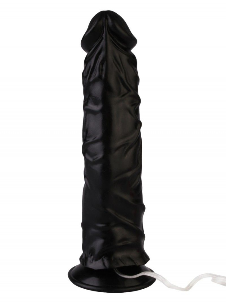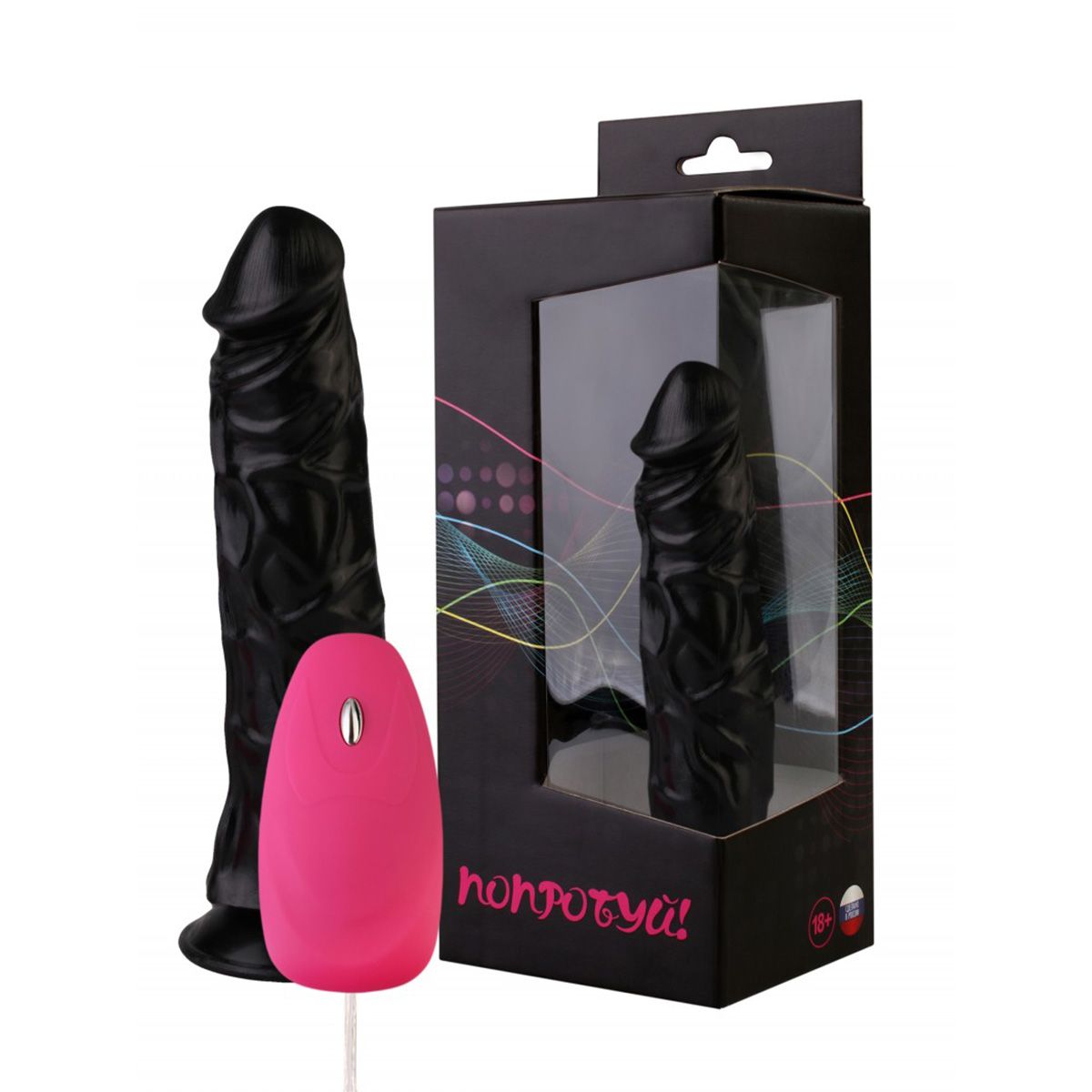 Купить Черный реалистичный вибромассажер №9 с проводным пультом - 19,5 см. Джага-Джага по лучшей цене с доставкой - секс-шоп Ynunu.ru