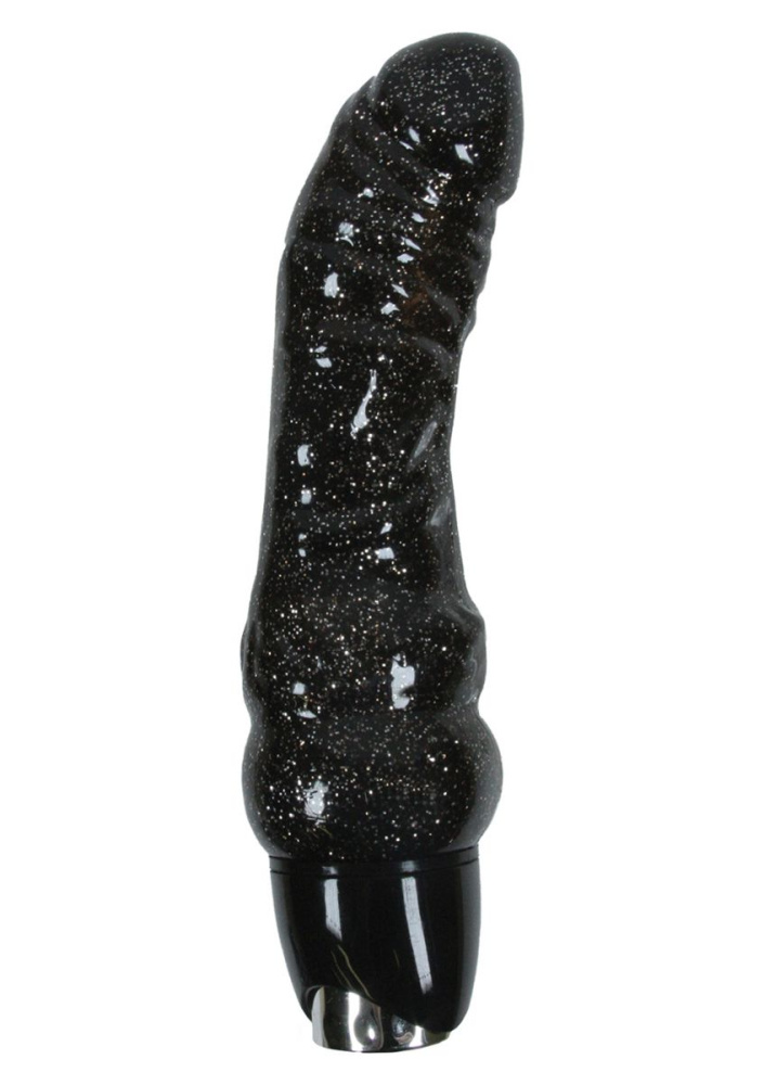 Чёрный вибратор с блёстками STARLIGHT GEMS ORION - 19 см.