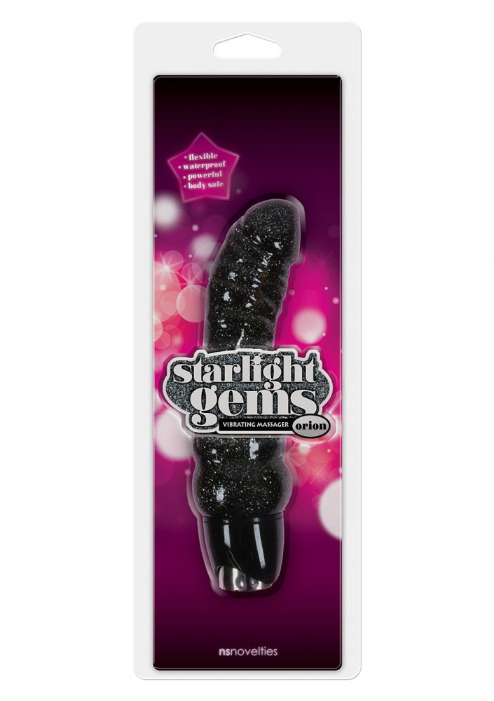 Купить Чёрный вибратор с блёстками STARLIGHT GEMS ORION - 19 см. NS Novelties по лучшей цене с доставкой - секс-шоп Ynunu.ru