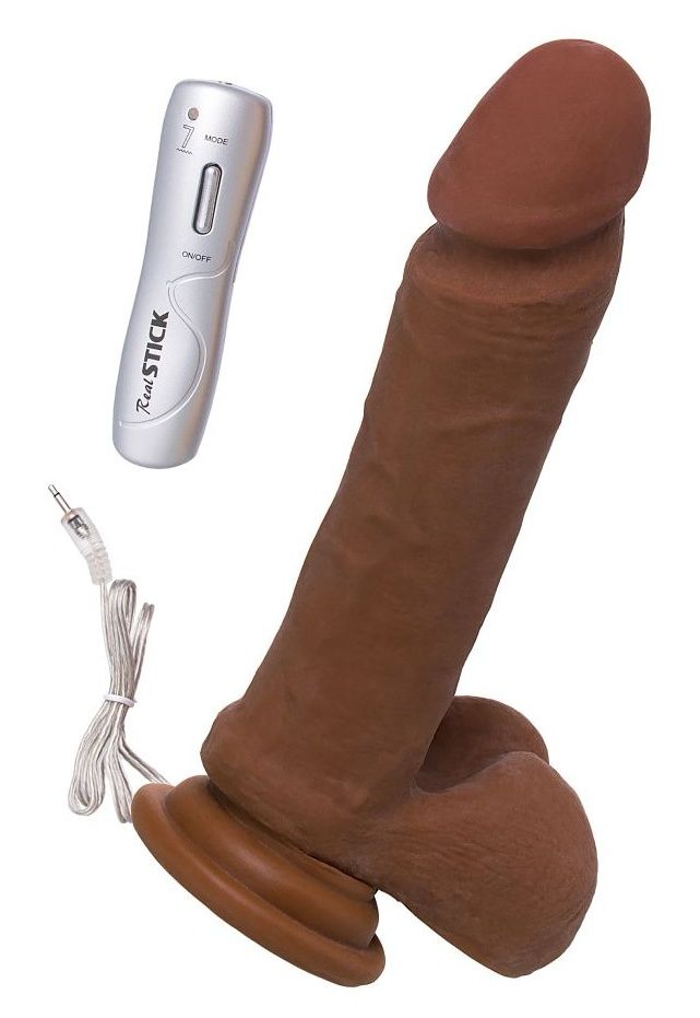 Купить Коричневый вибратор-реалистик на присоске с пультом ДУ - 21 см. ToyFa по лучшей цене с доставкой - секс-шоп Ynunu.ru