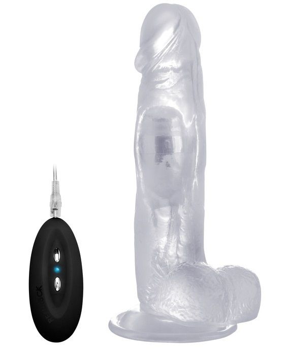 Прозрачный вибратор-реалистик Vibrating Realistic Cock 8 With Scrotum. С присоской в основании и мошонкой для реалистичности ощущений. 10 режимов вибрации. Проводной пульт управления.