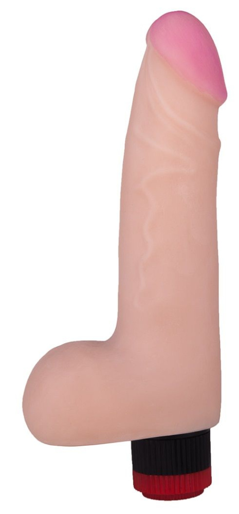 Вибромассажёр выполнен из неоскин – киберкожи последнего поколения. Вот почему и крупная розовая головка, и плотный ствол, и даже мошонка так нежны и бархатисты, как настоящая плоть.