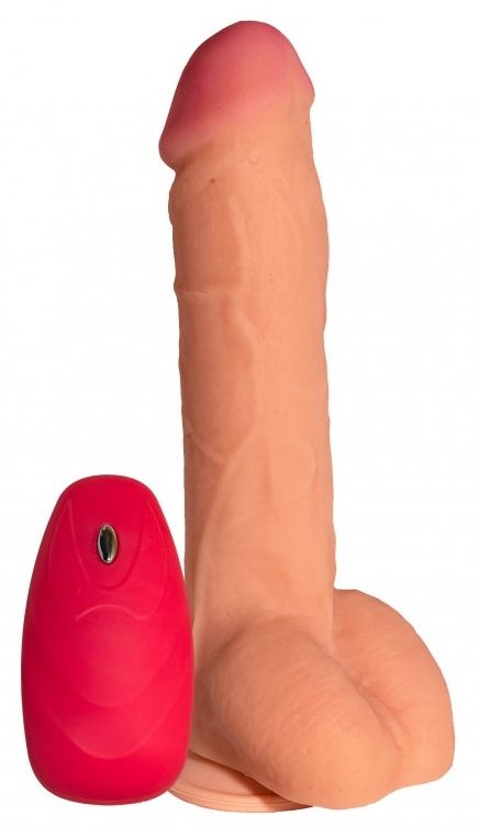 Купить Телесный реалистичный вибратор №75 с проводным пультом - 23,5 см. Джага-Джага по лучшей цене с доставкой - секс-шоп Ynunu.ru