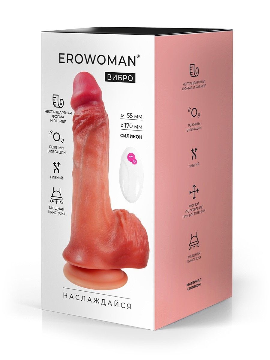 Купить Телесный вибратор-реалистик с присоской и пультом ДУ - 25,5 см. Erowoman-Eroman по лучшей цене с доставкой - секс-шоп Ynunu.ru