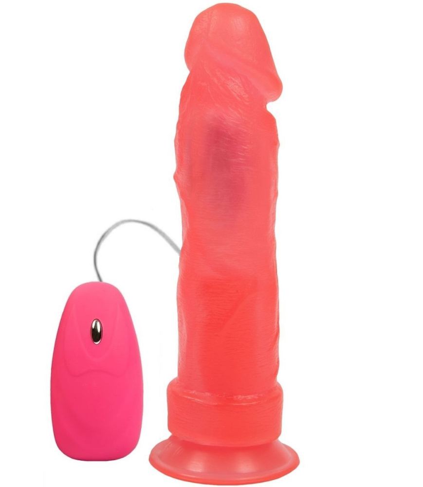 Розовый гелевый вибромассажер на присоске с проводным пультом - 20,5 см.