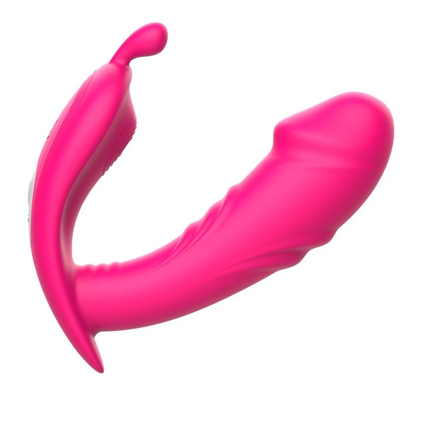 Розовый вибромассажёр с пультом дистанционного управления