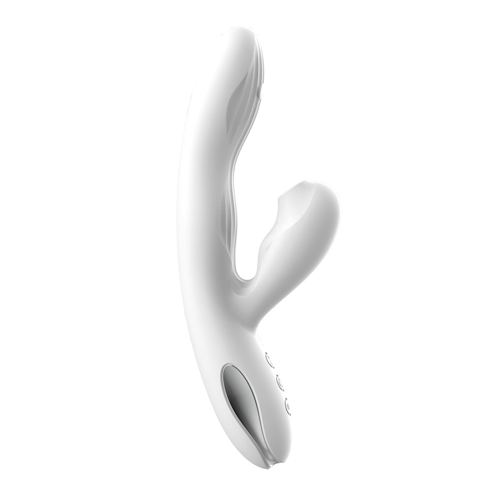 Белый вибратор-кролик Eria с вакуумной стимуляцией, функцией tapping и нагревом - 21,5 см.