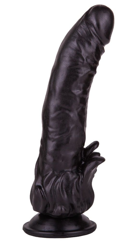 Чёрный фаллоимитатор с клиторальными лепестками - 18,5 см.
