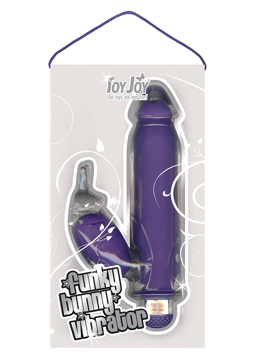 Купить Фиолетовый вибратор FUNKY BUNNY со стимулятором клитора - 18,5 см Toy Joy по лучшей цене с доставкой - секс-шоп Ynunu.ru