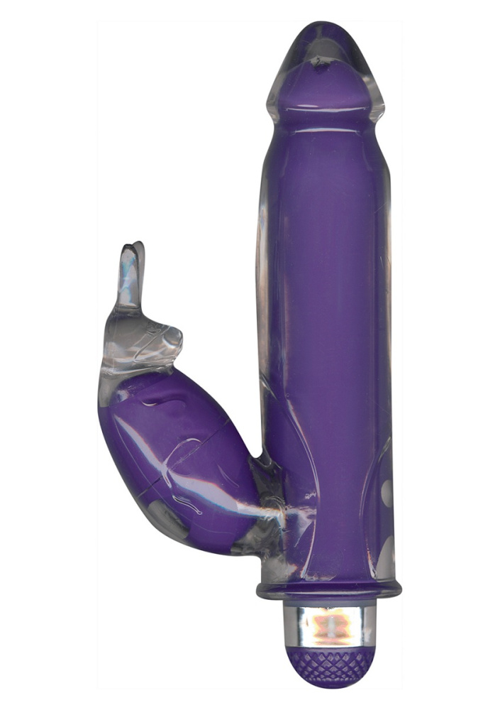 Фиолетовый вибратор FUNKY BUNNY со стимулятором клитора - 18,5 см