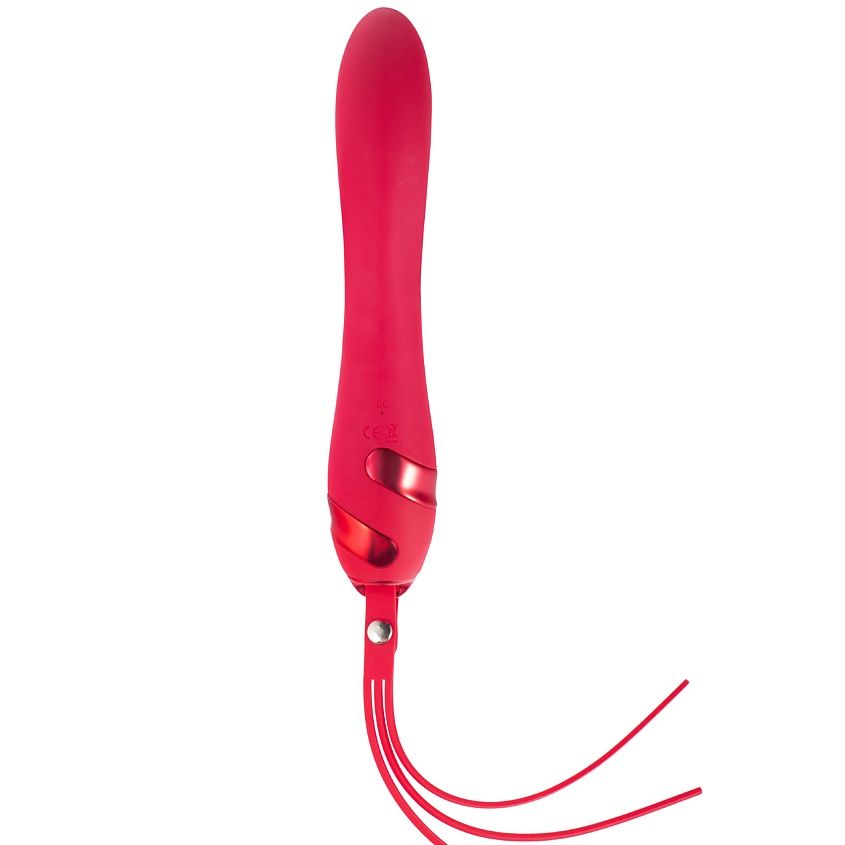 Вибратор имеет необычный элемент – съёмный силиконовый ремешок с тремя хвостиками. Его можно использовать по-разному: в качестве миниатюрного ударного девайса, оставить его на вибраторе как украшение или просто снять и убрать в сторону, если вам так захочется.